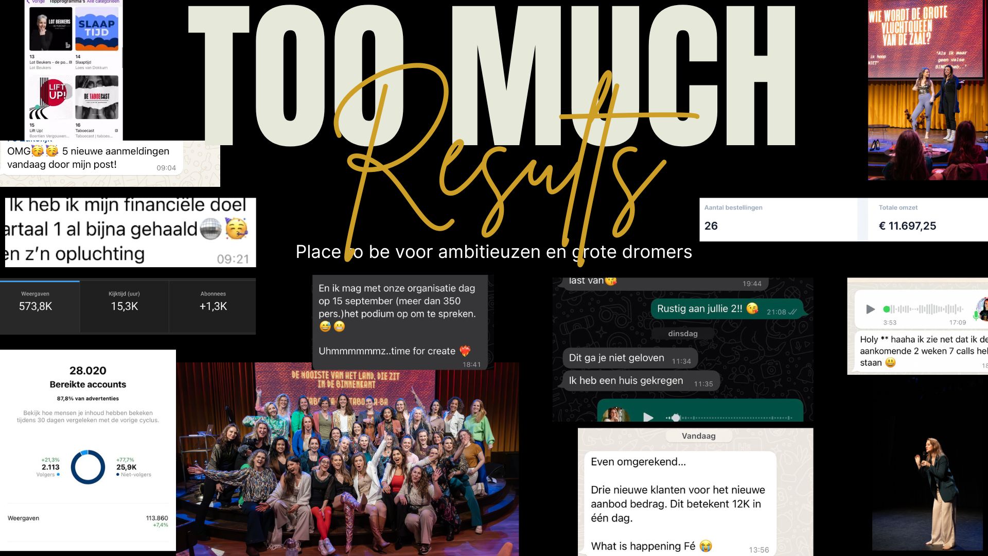 TOO MUCH resultaat. (2 events voor 40+, 8 groepen gedraaid, 150+ onderneemsters geholpen, 2 magazine interviews, tienduizenden luisteraars met mijn Taboecast)